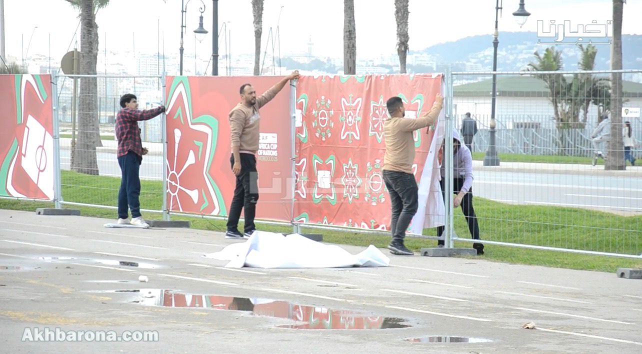 طنجة...استعدادات مكثّفة لتجهيز منطقة المشجعين "فانزون" بفيلا هارس قبل انطلاق الكان
